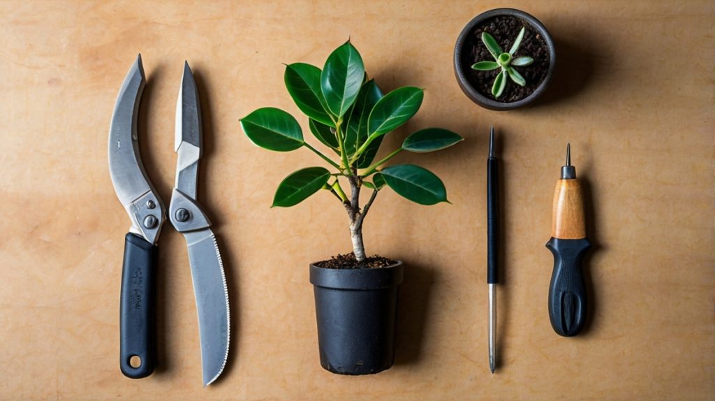 ガジュマルの挿し木に挑戦するなら、やっぱり成功させたいですよね!その成功率をグッと上げるためには、事前のしっかりとした準備と、作業を行う絶好のタイミングを見極めることが非常に大切です。まず準備するものですが、切れ味の良い清潔なハサミやカッターは必須。使用前にはアルコールで消毒するか、ライターの火で軽く炙るなどして殺菌するとより安全です。汚れていたり錆びていたりすると、切り口から雑菌が入って失敗の原因になることも。挿し木用の土は、赤玉土の小粒や鹿沼土、バーミキュライトなど、水はけと通気性の良い清潔なものを選びましょう。新しい鉢も、挿し穂の大きさに合わせて小さめのもの(2~3号ポットなど)を用意しておくと良いですね。あれば、発根促進剤(ルートンなど)や植物活力剤(メネデールなど)も準備しておくと心強いです。