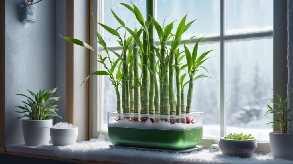 熱帯生まれのミリオンバンブーにとって、日本の冬の寒さは大敵です。特にハイドロカルチャーは、水温が気温の影響を受けやすく、根が冷えやすいため、土栽培以上に冬場の温度管理が重要になります。最低でも10℃、できれば12℃以上の環境を保つのが理想です。